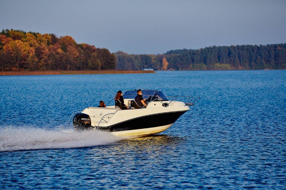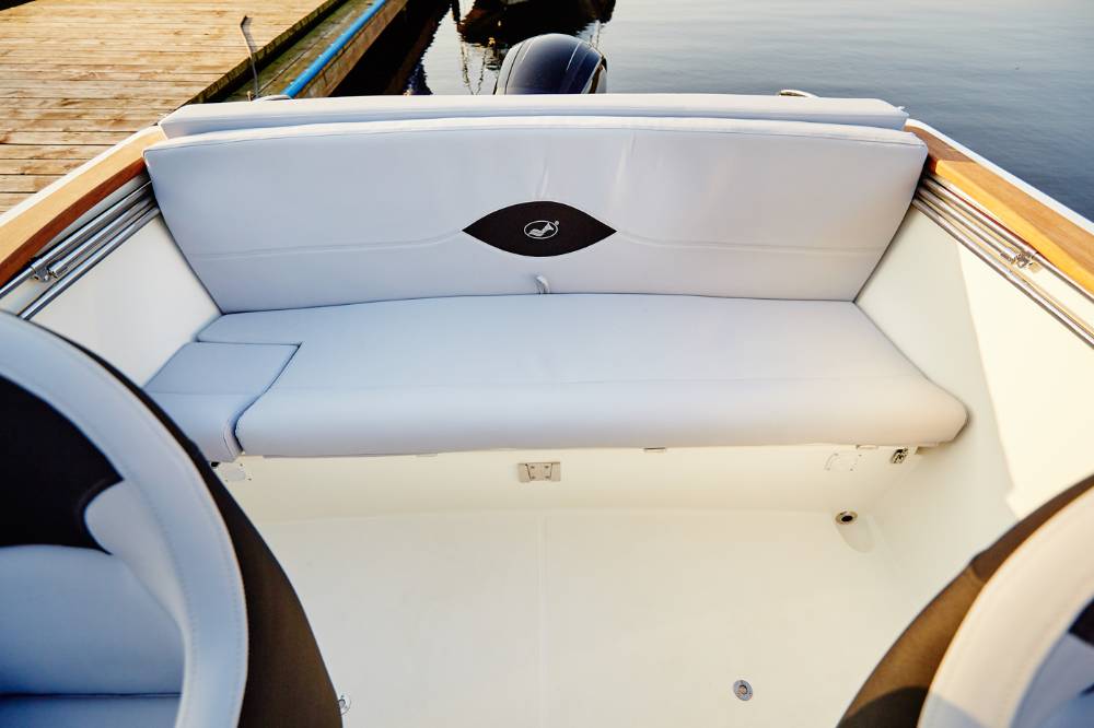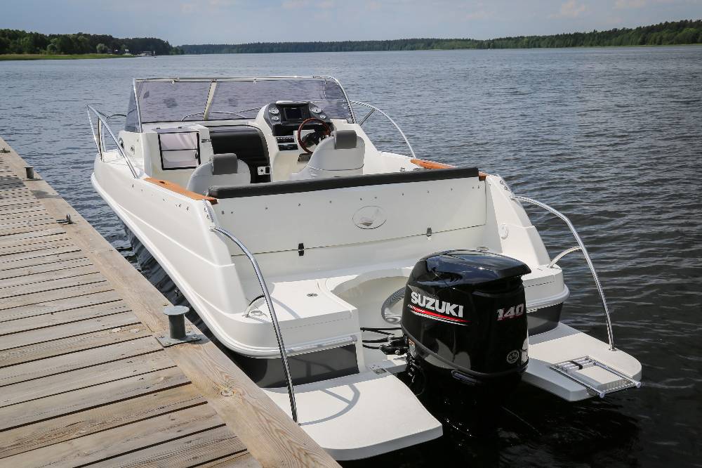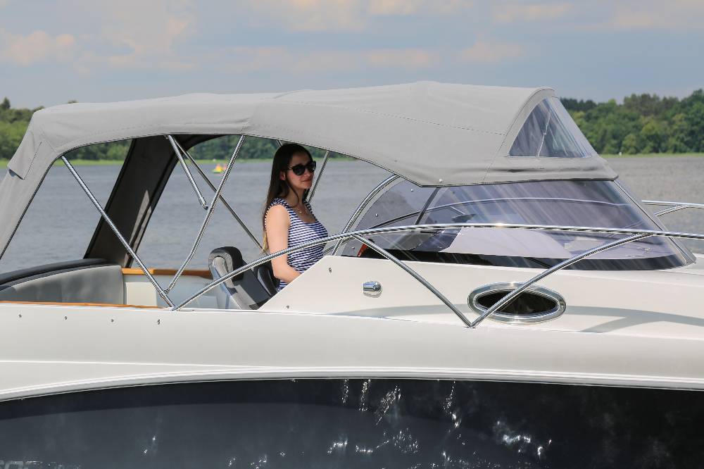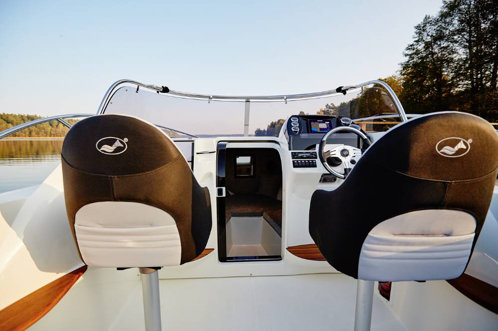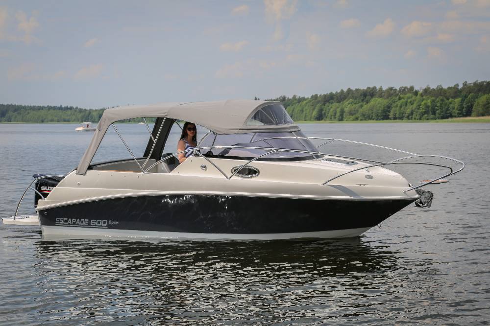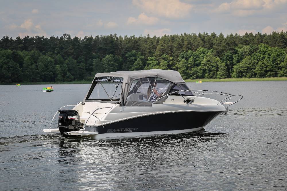 Die Escapade 600 Open ist eine modifizierte Version der Escapade 600 Suntop. In dieser Version haben wir das feste Dach durch ein abgesenktes Plexiglasfenster ersetzt, wodurch das Cockpit vollständig offen bleibt. Selbstverständlich kann das Cockpit weiterhin mit einem Stoffverdeck vollständig abgedeckt werden. Alle anderen Merkmale sind identisch zur Suntop-Version. Dies ist eine Kajutyacht mit Motor, die voller innovativer Lösungen steckt. Das geräumige Cockpit bietet viele interessante Funktionen, wie einen verstauten Kocher, einen Klapptisch, ein Waschbecken mit Dusche und eine ausklappbare Heckbank, die eine bequeme Sonnenliege oder zusätzlichen Schlafplatz für zwei Personen schafft. Bei schlechtem Wetter schützt das Stoffverdeck, das in wenigen Minuten aufgebaut werden kann, vor Regen und bietet an heißen Tagen angenehmen Schatten. Die große Kabine bietet Platz für einen Kühlschrank, einen Fernseher und sogar eine Bordtoilette mit Wasserspülung. Die großzügigen Abmessungen des Bootes ermöglichen einen komfortablen Straßentransport.
