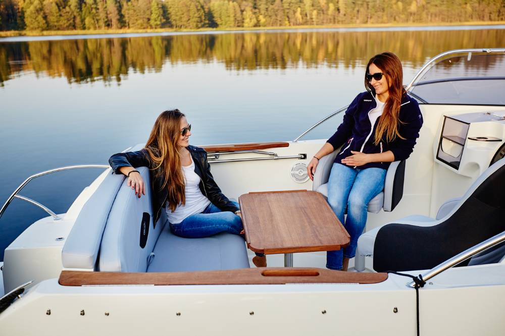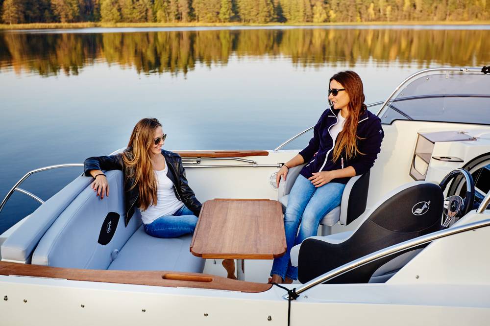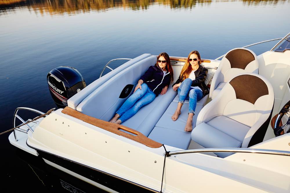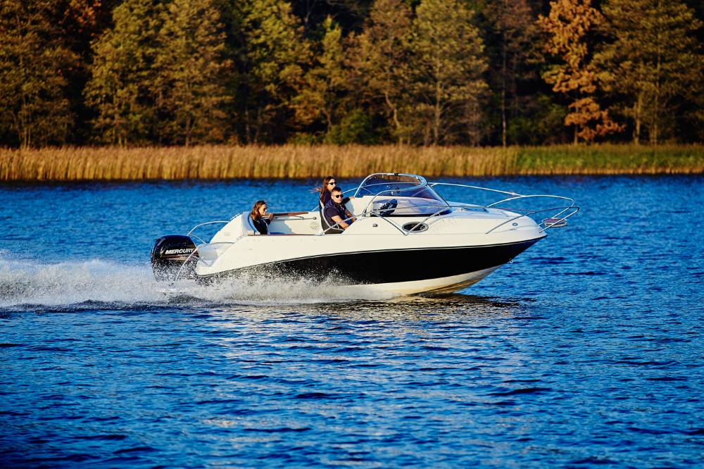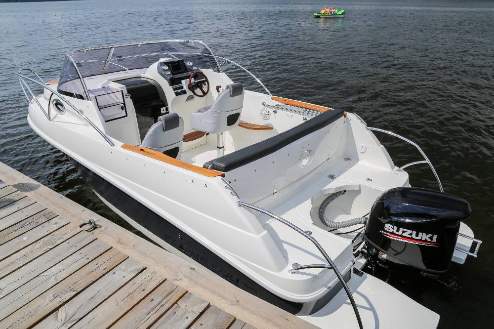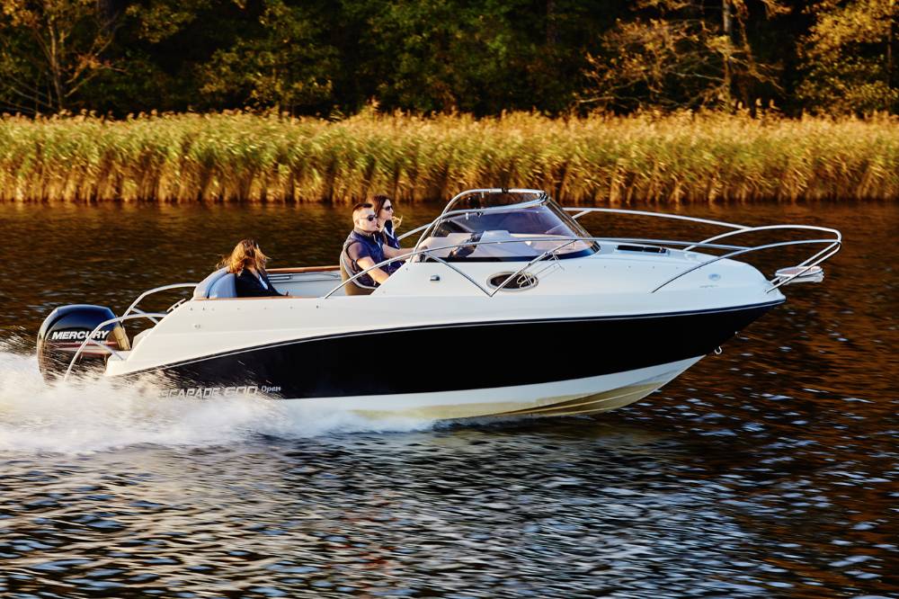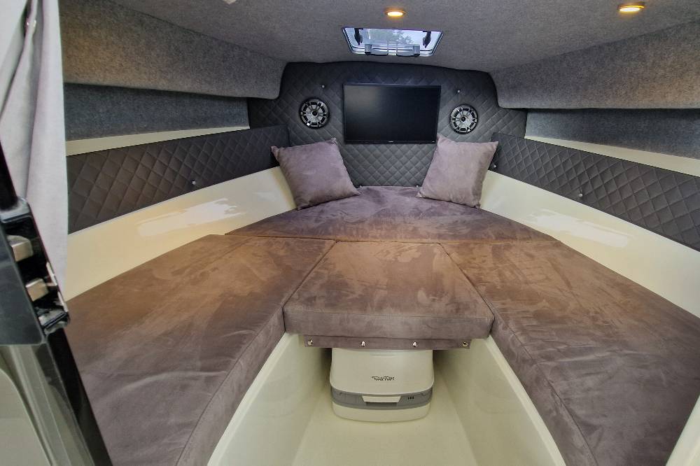 Die Escapade 600 Open ist eine modifizierte Version der Escapade 600 Suntop. In dieser Version haben wir das feste Dach durch ein abgesenktes Plexiglasfenster ersetzt, wodurch das Cockpit vollständig offen bleibt. Selbstverständlich kann das Cockpit weiterhin mit einem Stoffverdeck vollständig abgedeckt werden. Alle anderen Merkmale sind identisch zur Suntop-Version. Dies ist eine Kajutyacht mit Motor, die voller innovativer Lösungen steckt. Das geräumige Cockpit bietet viele interessante Funktionen, wie einen verstauten Kocher, einen Klapptisch, ein Waschbecken mit Dusche und eine ausklappbare Heckbank, die eine bequeme Sonnenliege oder zusätzlichen Schlafplatz für zwei Personen schafft. Bei schlechtem Wetter schützt das Stoffverdeck, das in wenigen Minuten aufgebaut werden kann, vor Regen und bietet an heißen Tagen angenehmen Schatten. Die große Kabine bietet Platz für einen Kühlschrank, einen Fernseher und sogar eine Bordtoilette mit Wasserspülung. Die großzügigen Abmessungen des Bootes ermöglichen einen komfortablen Straßentransport.