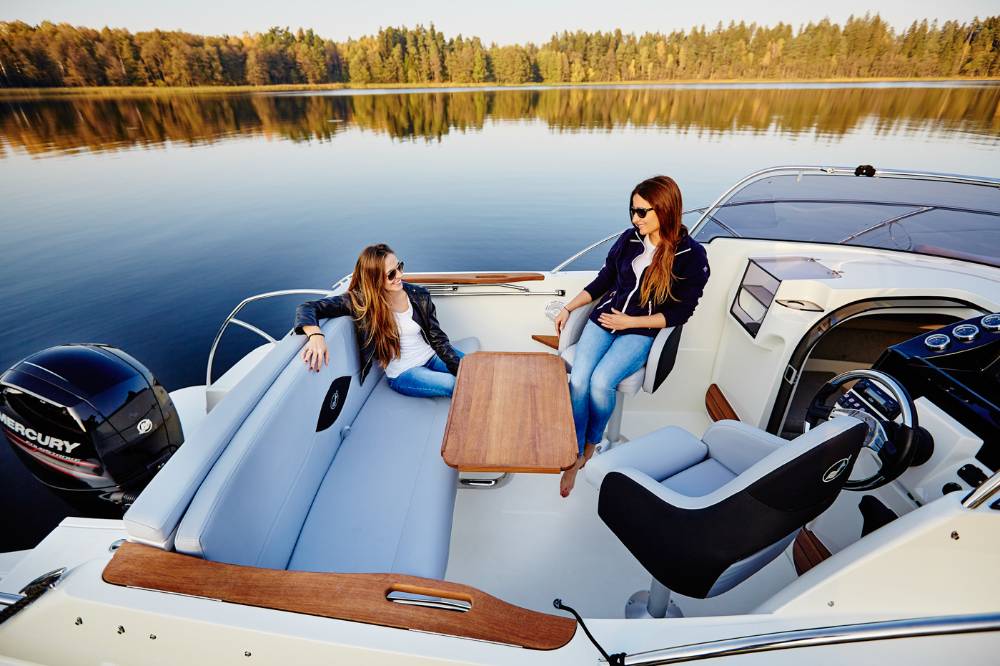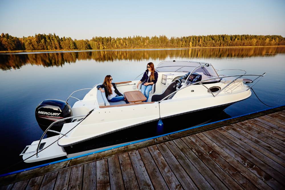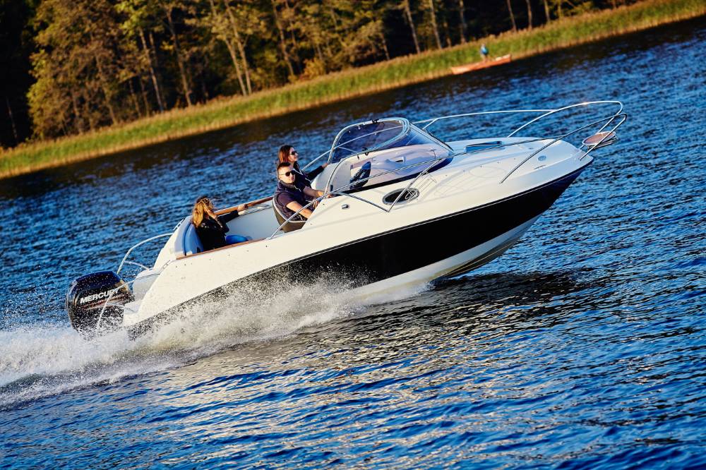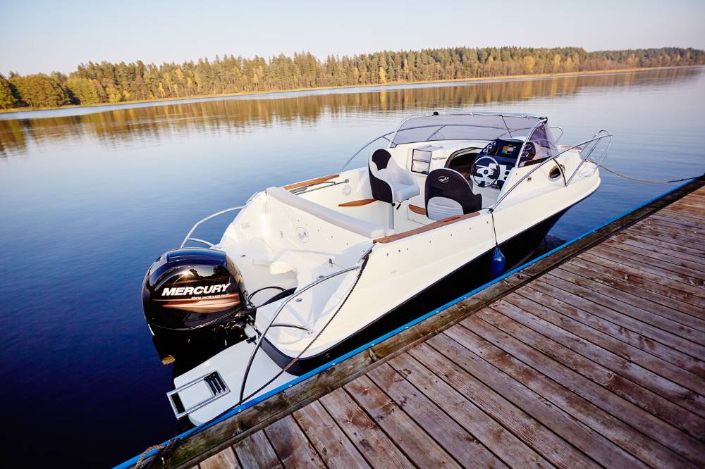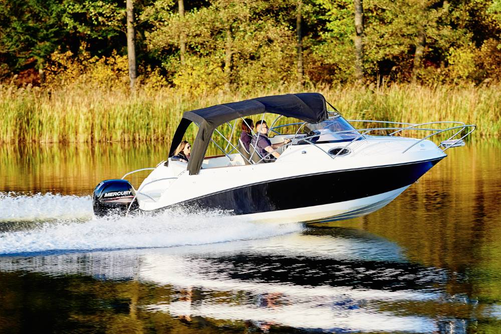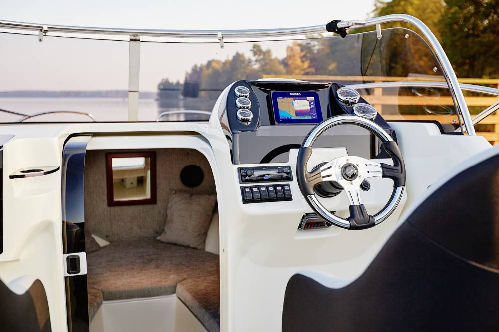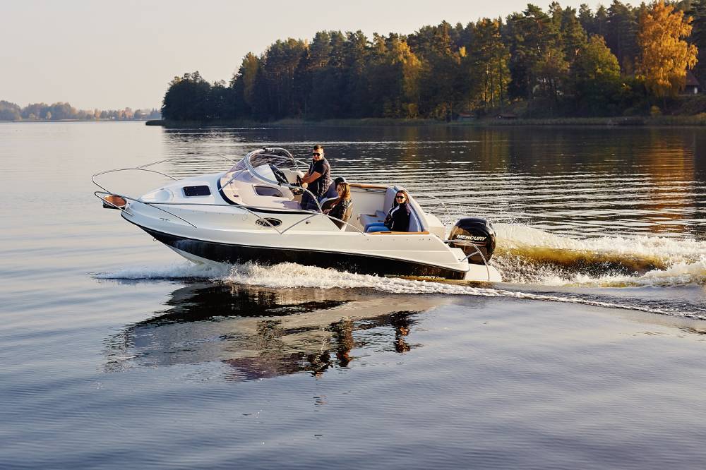 Die Escapade 600 Open ist eine modifizierte Version der Escapade 600 Suntop. In dieser Version haben wir das feste Dach durch ein abgesenktes Plexiglasfenster ersetzt, wodurch das Cockpit vollständig offen bleibt. Selbstverständlich kann das Cockpit weiterhin mit einem Stoffverdeck vollständig abgedeckt werden. Alle anderen Merkmale sind identisch zur Suntop-Version. Dies ist eine Kajutyacht mit Motor, die voller innovativer Lösungen steckt. Das geräumige Cockpit bietet viele interessante Funktionen, wie einen verstauten Kocher, einen Klapptisch, ein Waschbecken mit Dusche und eine ausklappbare Heckbank, die eine bequeme Sonnenliege oder zusätzlichen Schlafplatz für zwei Personen schafft. Bei schlechtem Wetter schützt das Stoffverdeck, das in wenigen Minuten aufgebaut werden kann, vor Regen und bietet an heißen Tagen angenehmen Schatten. Die große Kabine bietet Platz für einen Kühlschrank, einen Fernseher und sogar eine Bordtoilette mit Wasserspülung. Die großzügigen Abmessungen des Bootes ermöglichen einen komfortablen Straßentransport.