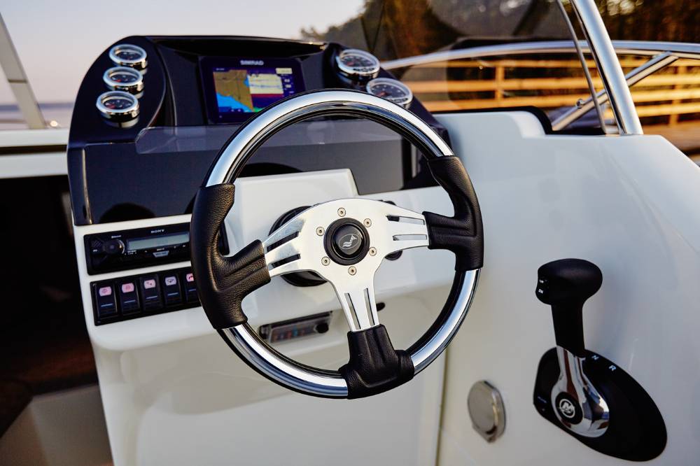 Seine breite Form, hohen Bordwände und der gut konstruierte Rumpf verleihen dem Boot hervorragende Seeeigenschaften.
