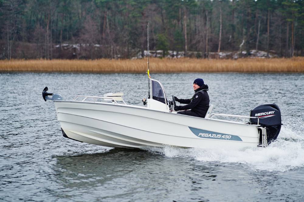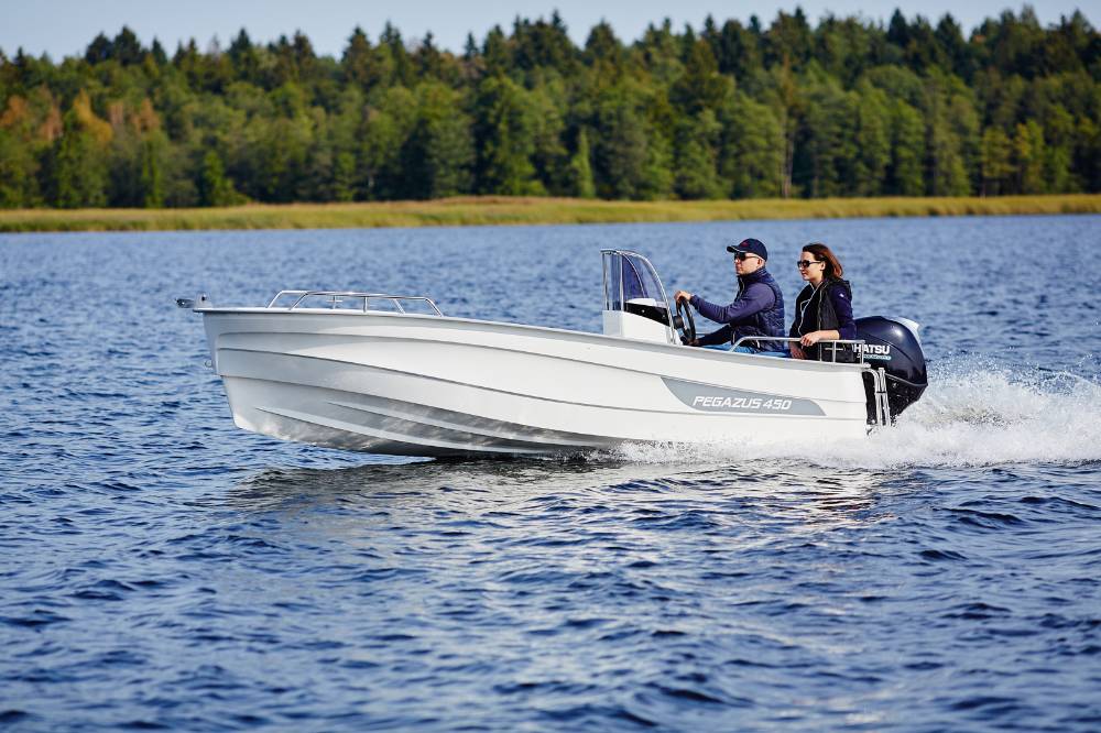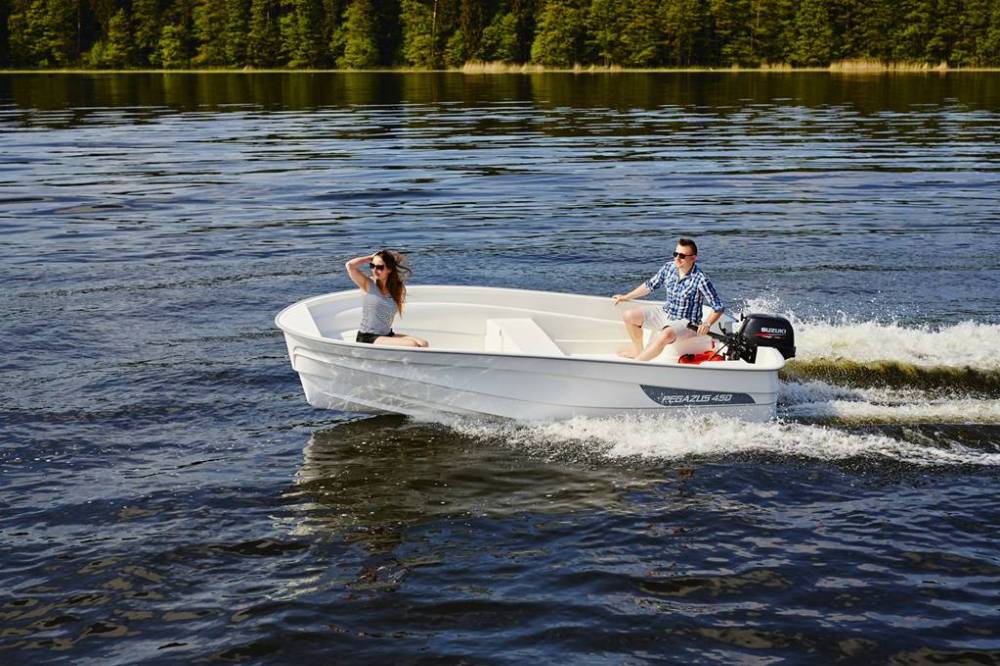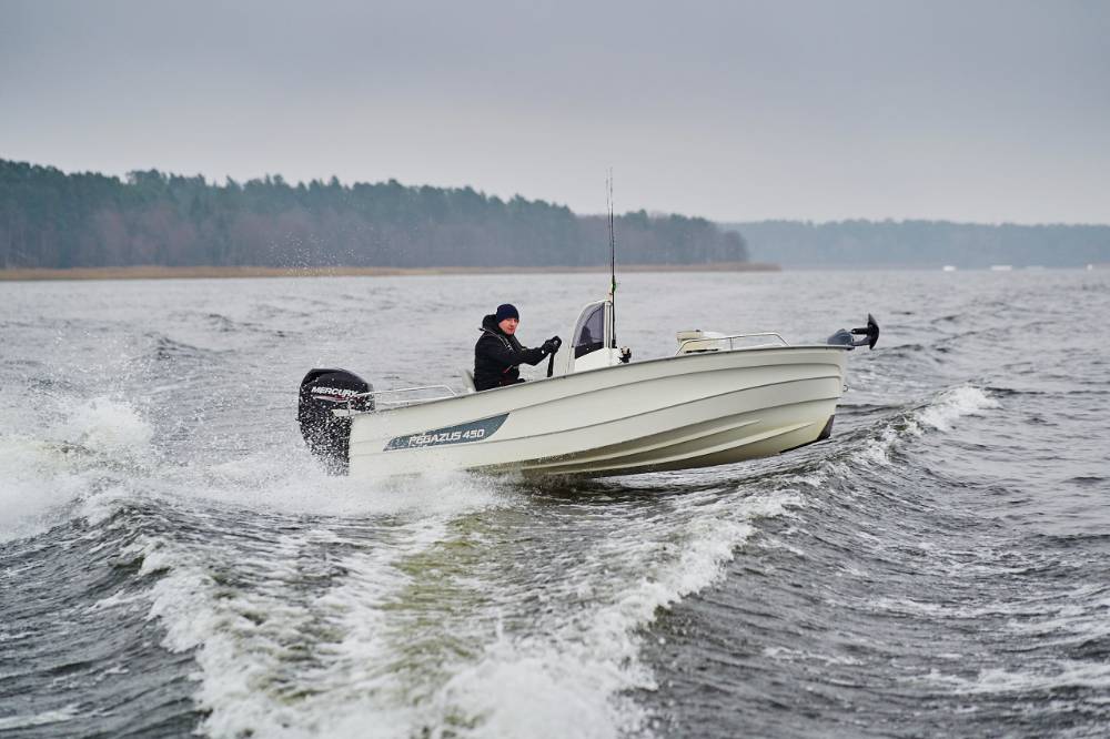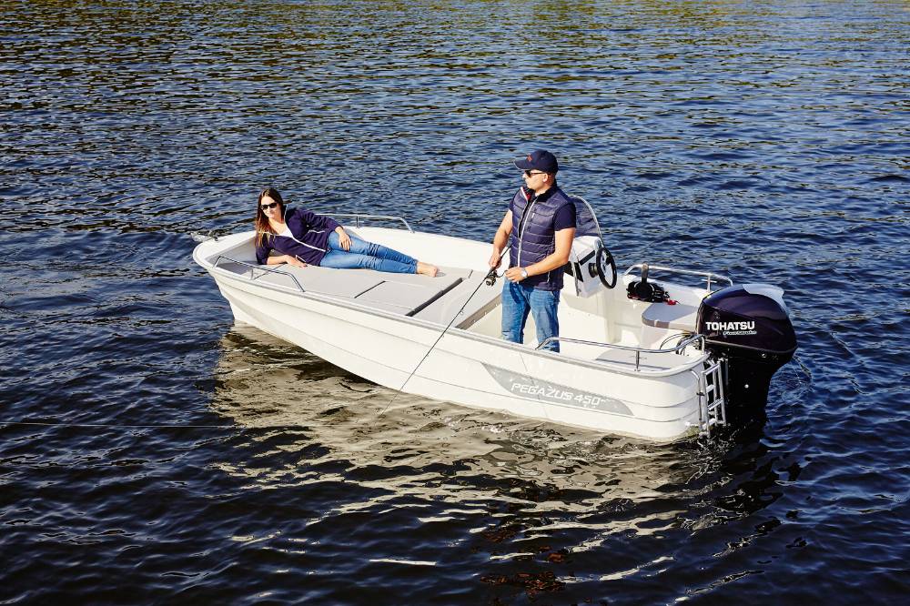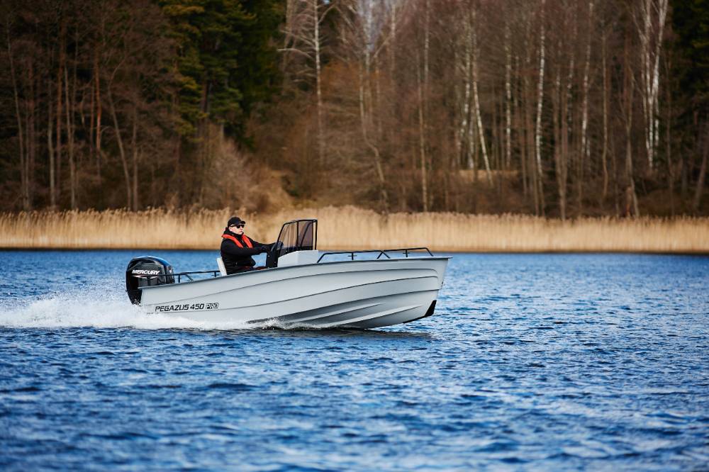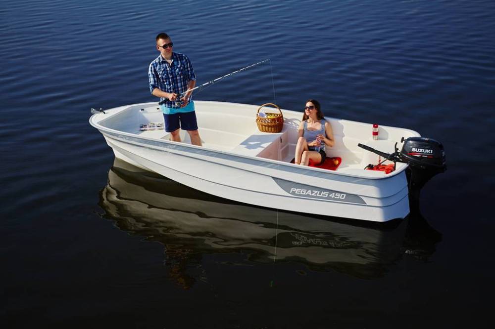 Die PEGAZUS 450 ist ein ausgezeichnetes 5-Personen-Boot für Familienausflüge oder Angeltouren. Das Boot verfügt über eine innovative Rumpfform, die die Wellen perfekt schneidet, ein selbstentwässerndes Deck, verschlossene Staufächer und ist mit 1,95 m das breiteste Boot seiner Klasse, was ihm außergewöhnliche Stabilität verleiht.