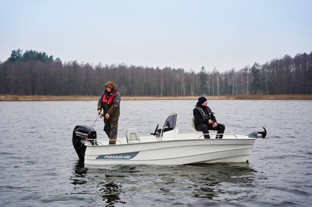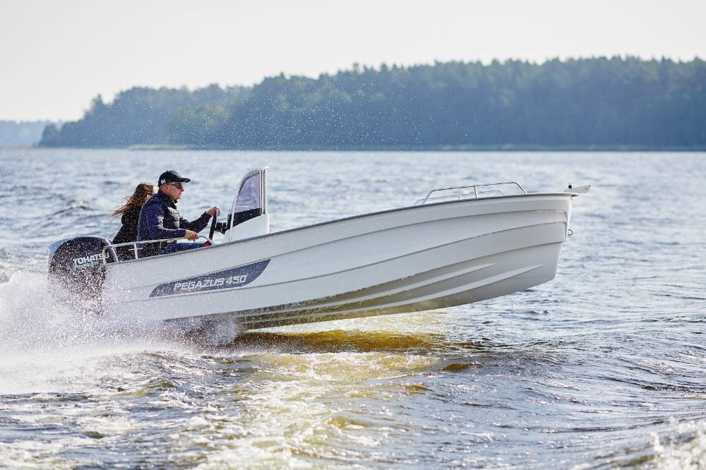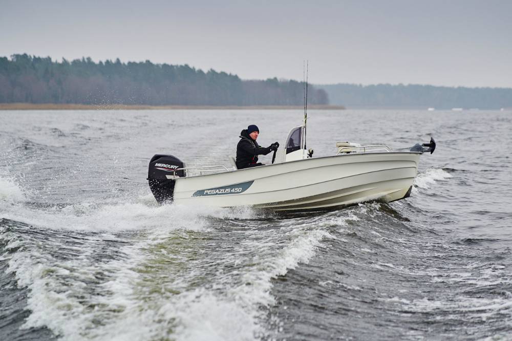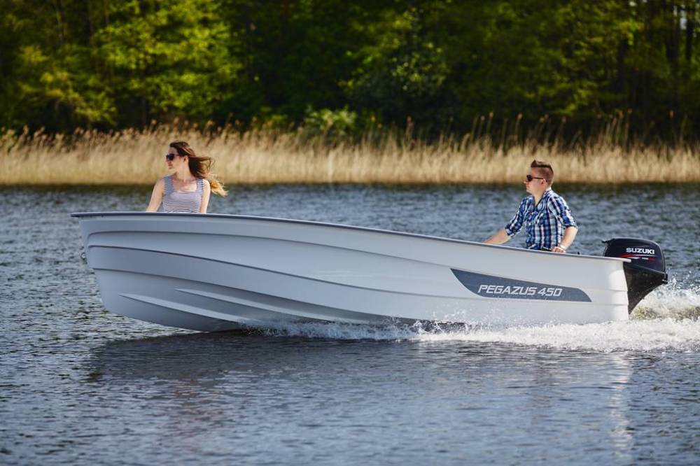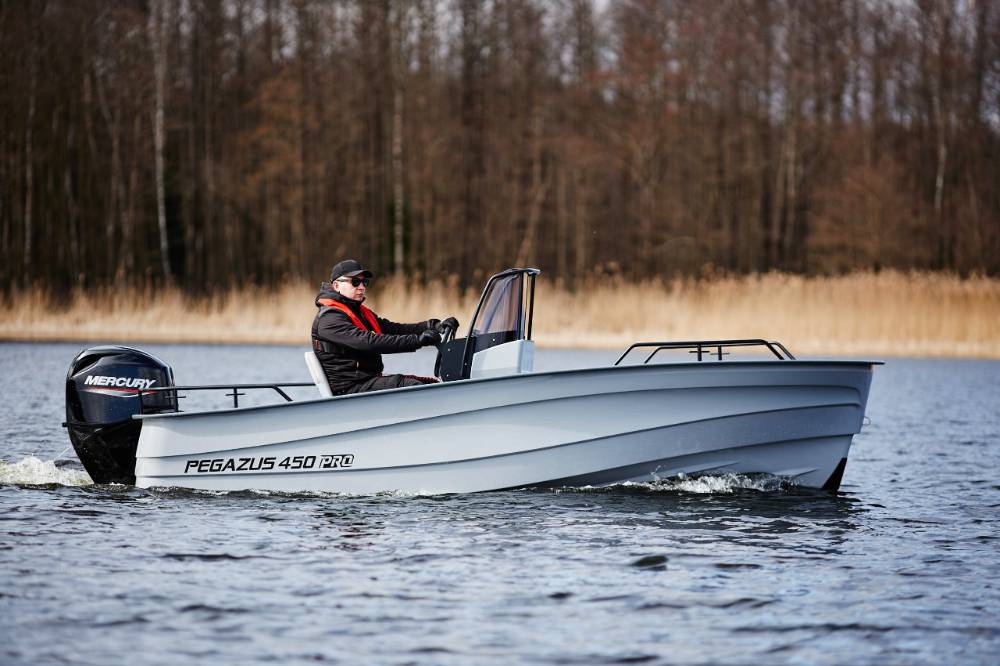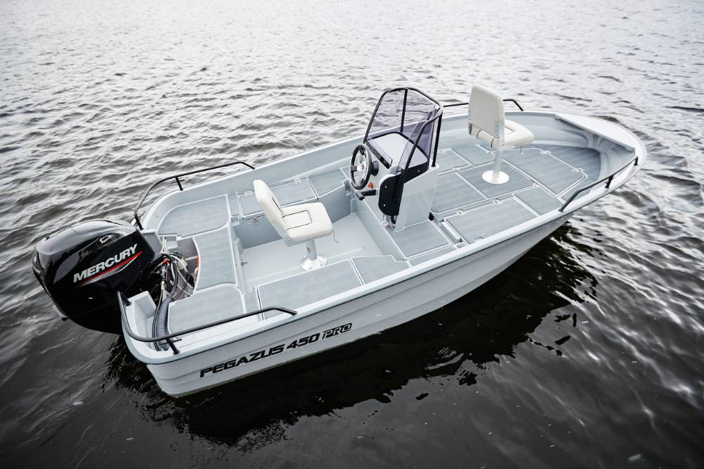 Die PEGAZUS 450 ist ein ausgezeichnetes 5-Personen-Boot für Familienausflüge oder Angeltouren. Das Boot verfügt über eine innovative Rumpfform, die die Wellen perfekt schneidet, ein selbstentwässerndes Deck, verschlossene Staufächer und ist mit 1,95 m das breiteste Boot seiner Klasse, was ihm außergewöhnliche Stabilität verleiht.