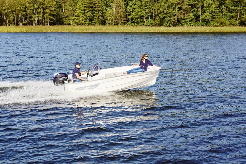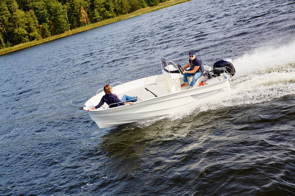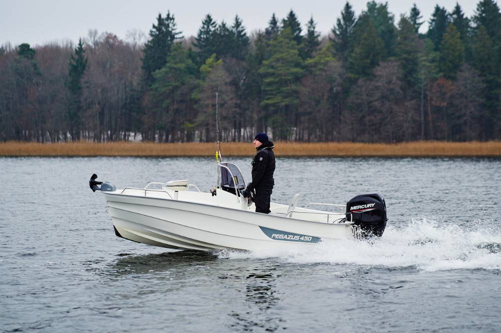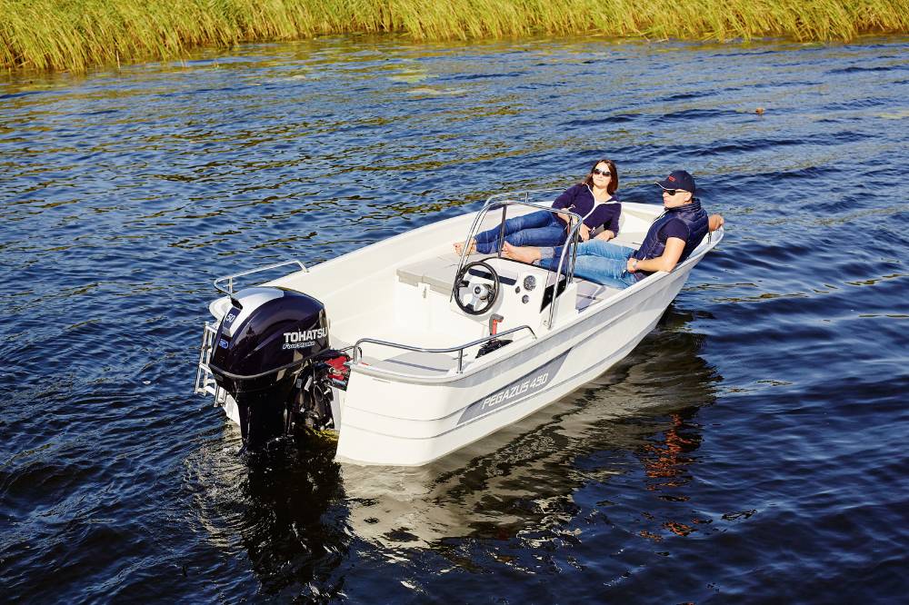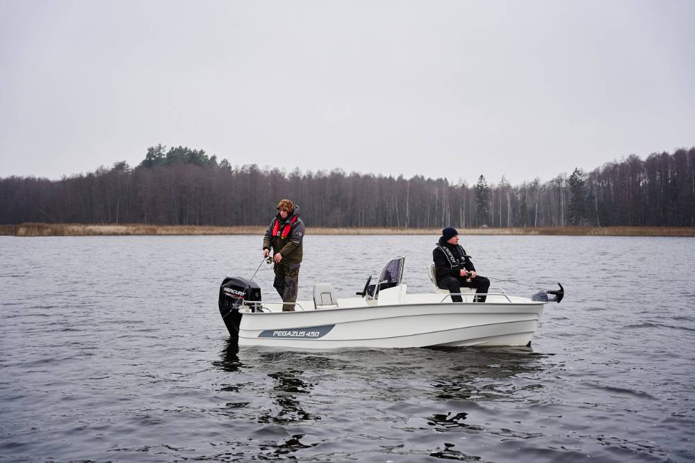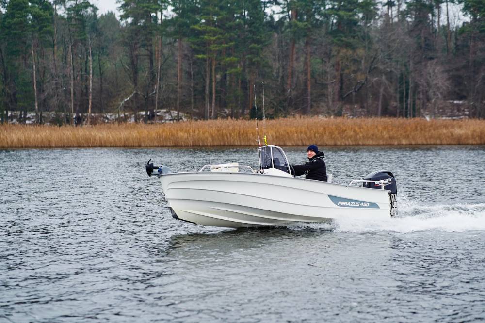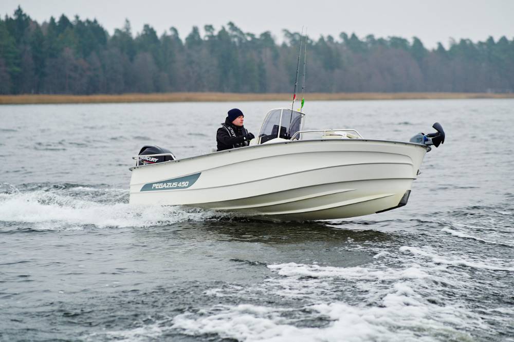 Die PEGAZUS 450 ist ein ausgezeichnetes 5-Personen-Boot für Familienausflüge oder Angeltouren. Das Boot verfügt über eine innovative Rumpfform, die die Wellen perfekt schneidet, ein selbstentwässerndes Deck, verschlossene Staufächer und ist mit 1,95 m das breiteste Boot seiner Klasse, was ihm außergewöhnliche Stabilität verleiht.