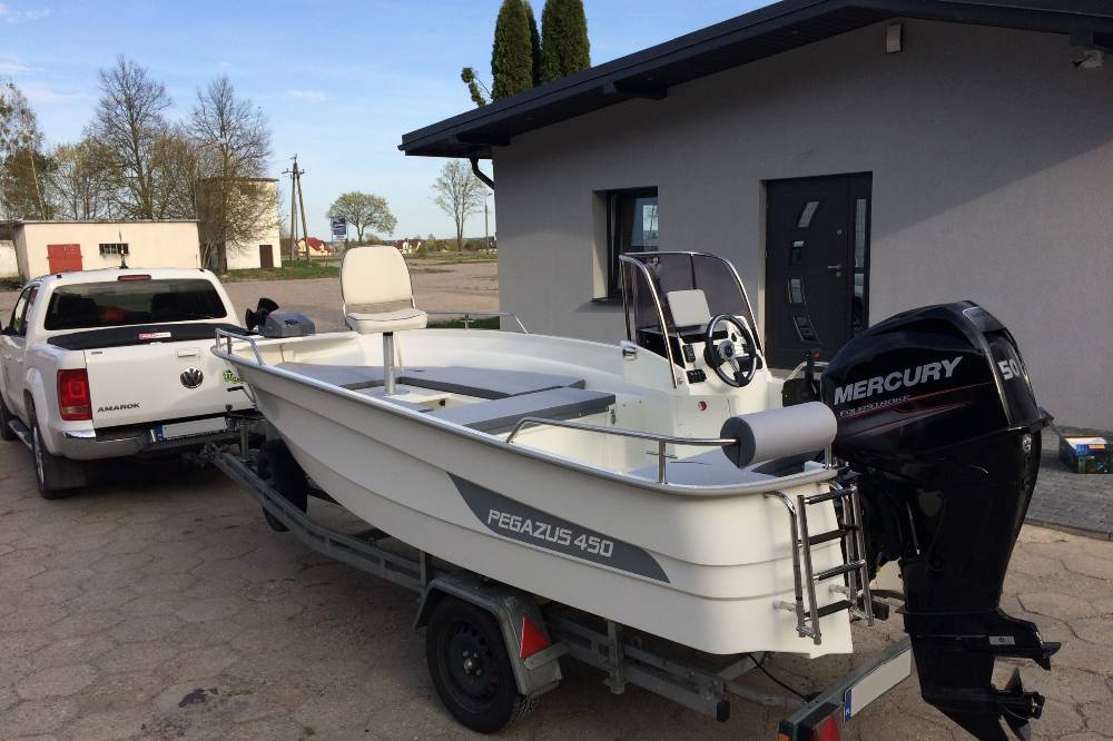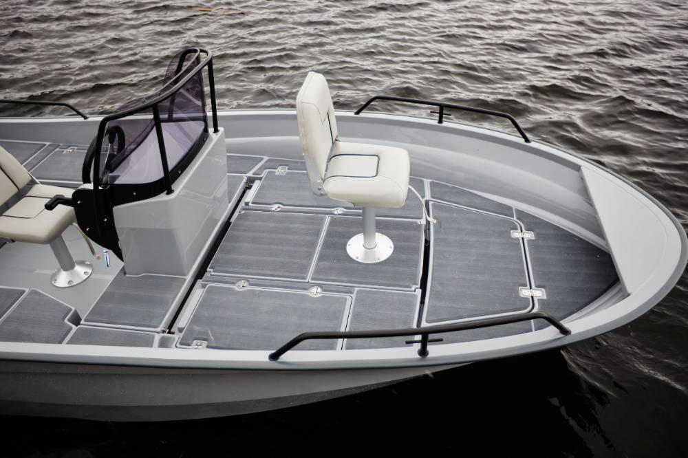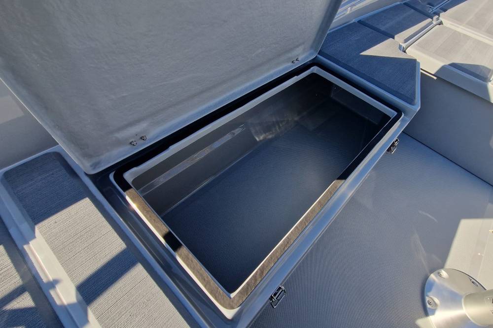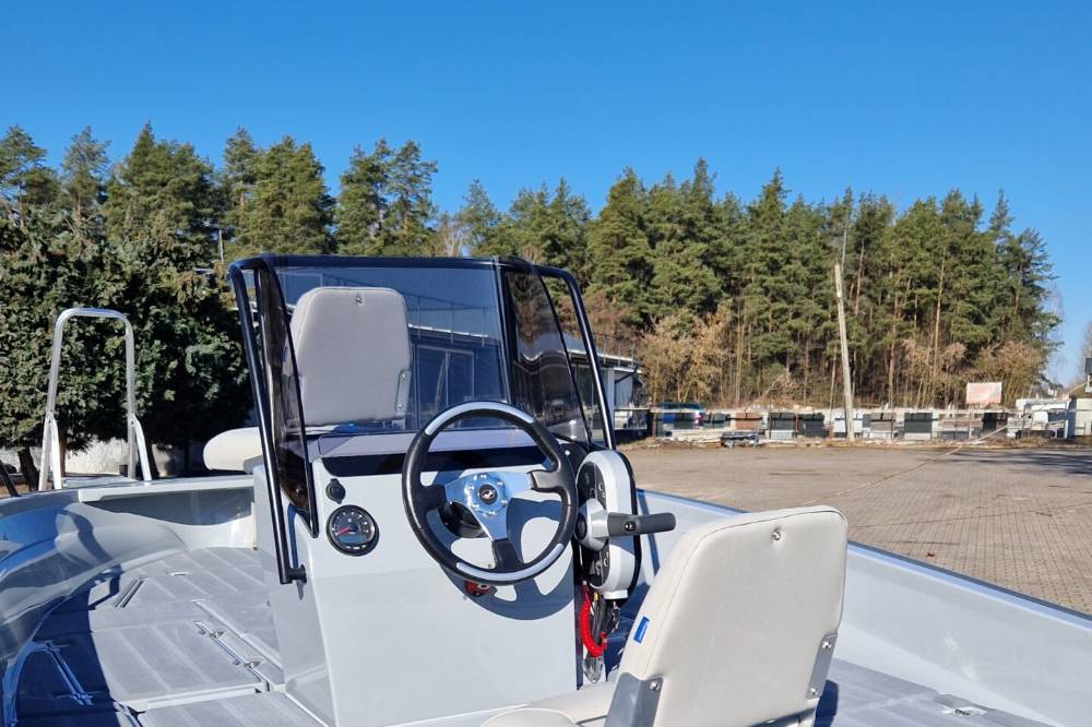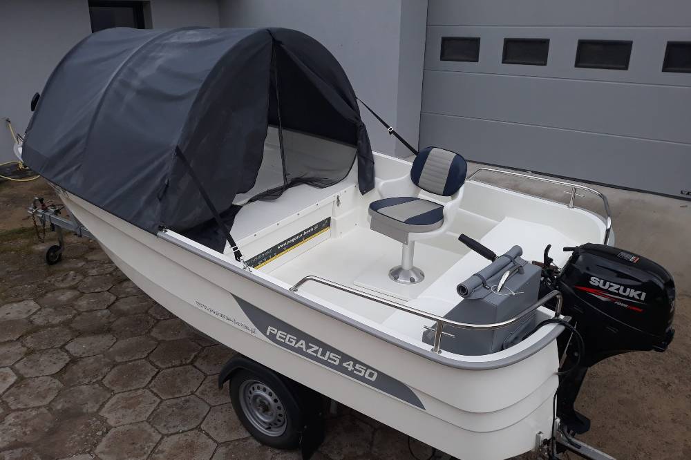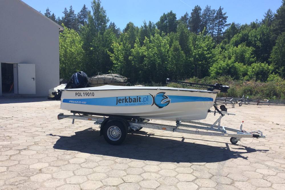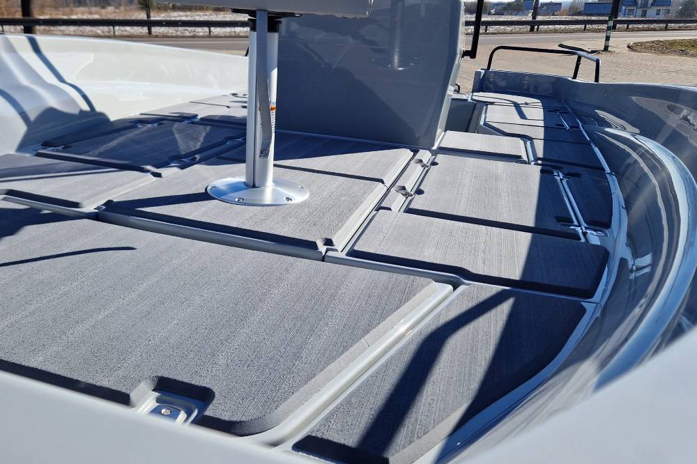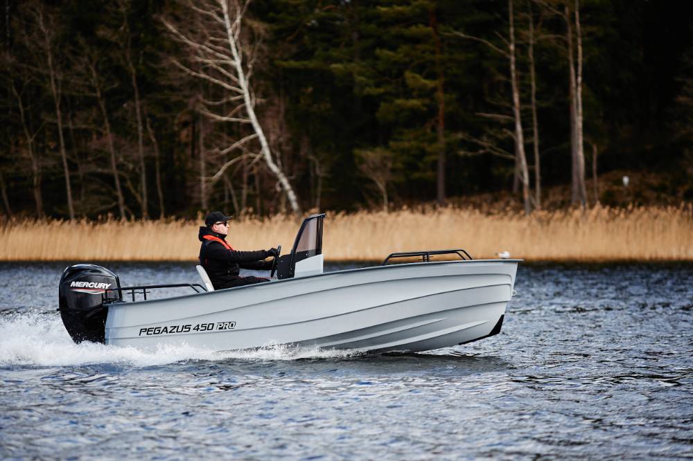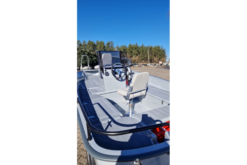 Neues Styling – PEGAZUS 450 PRO. Die Laminatfarbe wurde auf Grau geändert, die Stahlelemente sind nun mattschwarz, die Fenderleiste dunkler und die Aufkleber im neuen Design. Wir haben ein Schaumdeck und neue Staufächer hinzugefügt. Sieht fantastisch aus!
