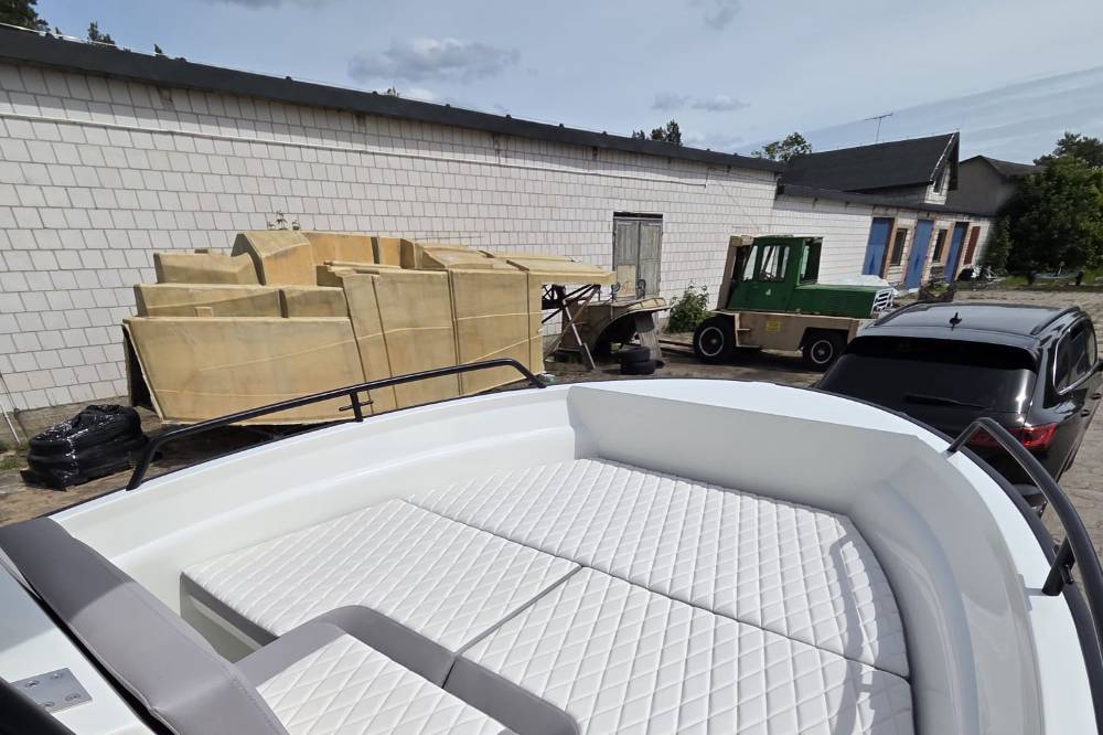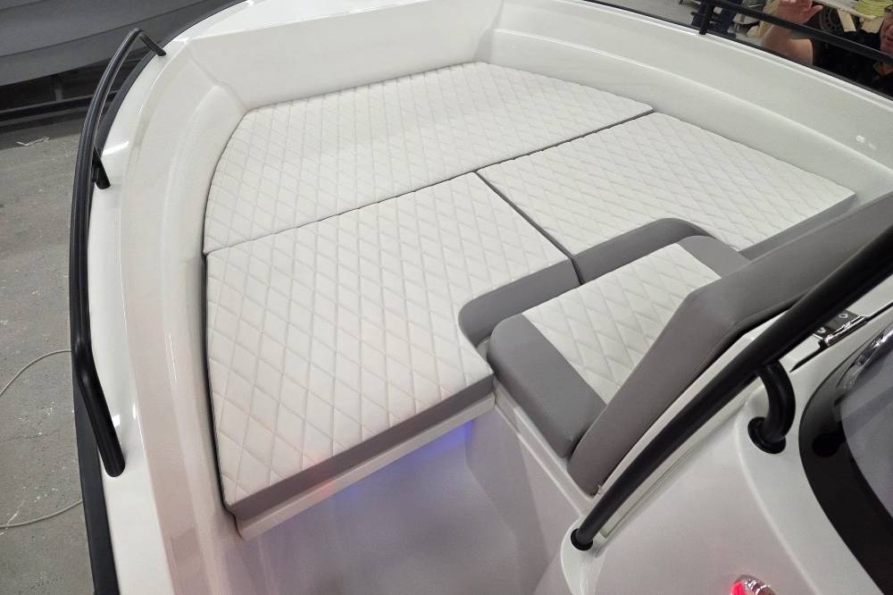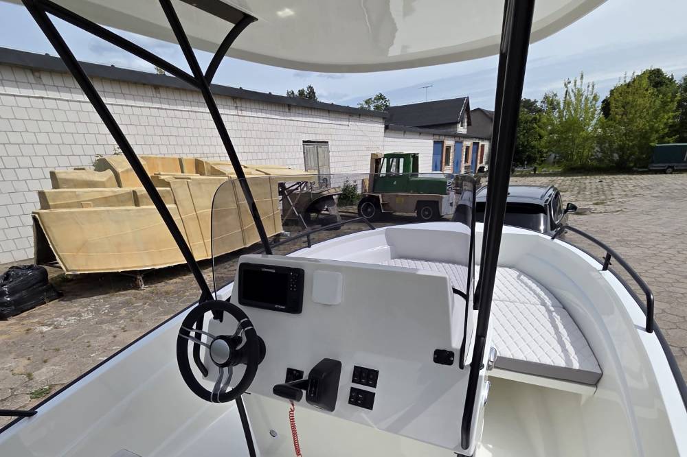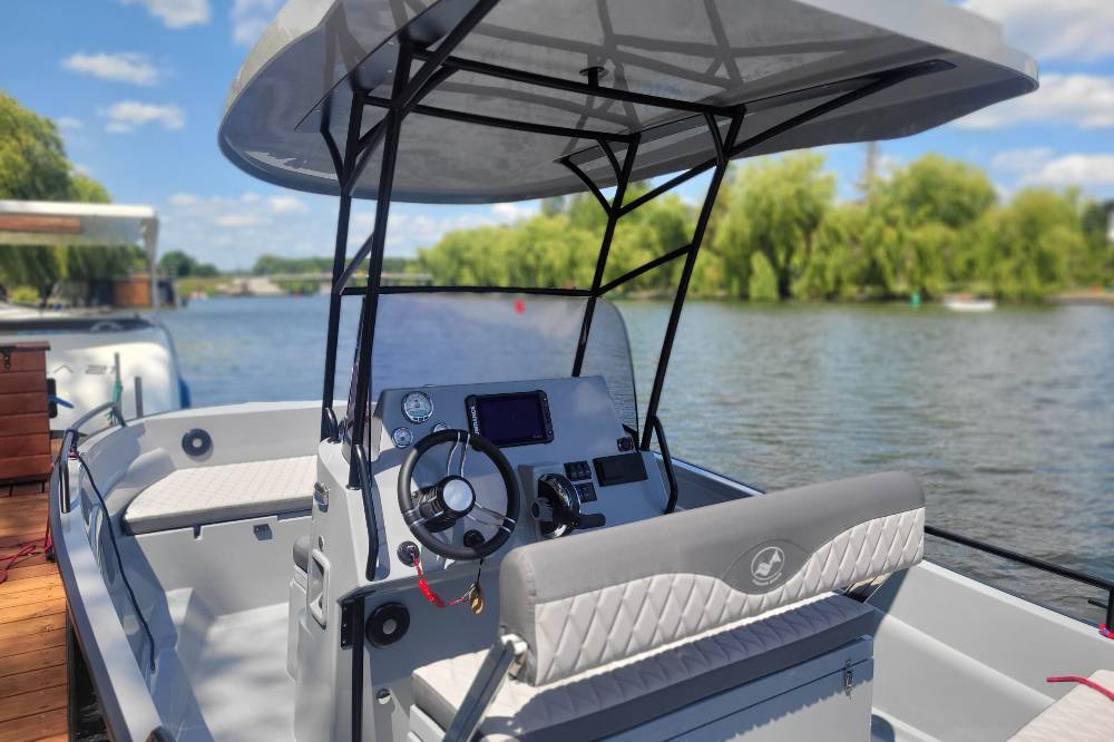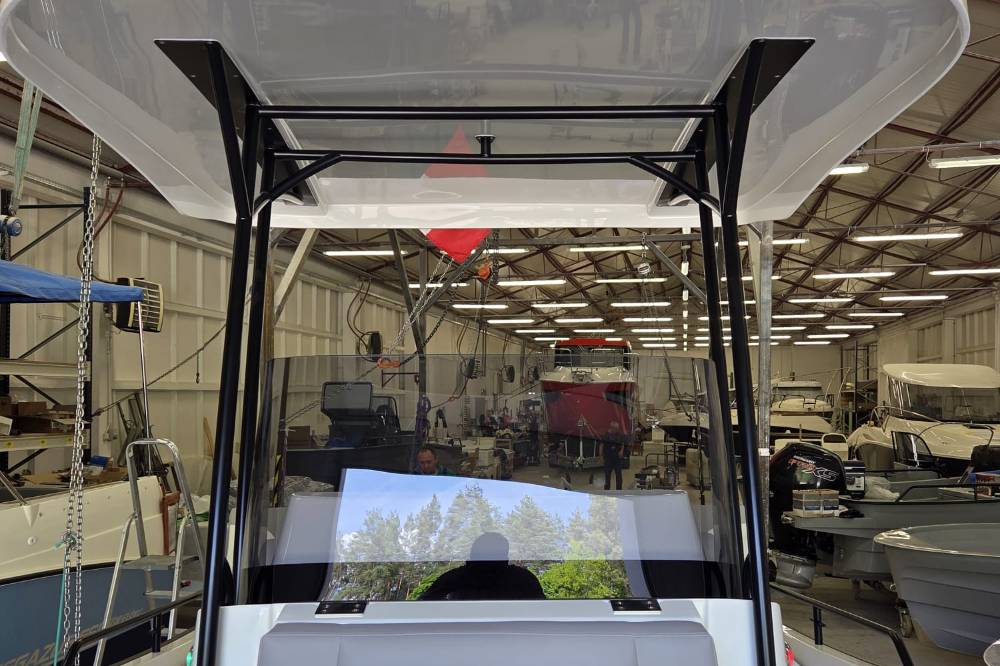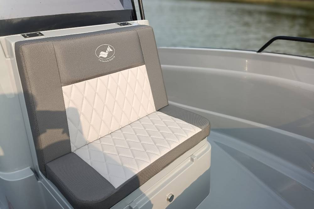 Die erste Version dieses Bootmodells wurde mit einer zentralen Steuerkonsole entworfen. Optional kann an der Konsole ein festes Hardtop-Dach auf einem Edelstahlrahmen angebracht werden, das dem Steuermann Schatten spendet und die Installation zusätzlicher Ausrüstung ermöglicht. Wir bieten eine große Auswahl an Ausstattungsoptionen, darunter zusätzliche Stauräume, Sonnenliegen und zusätzliche Rückenlehnen.