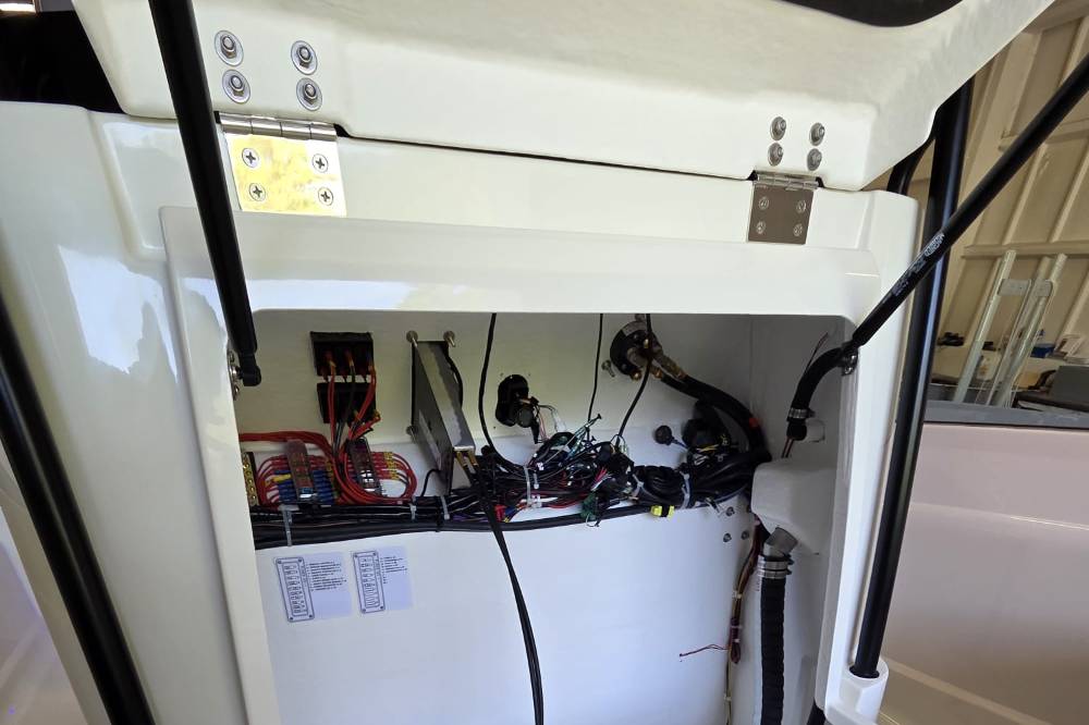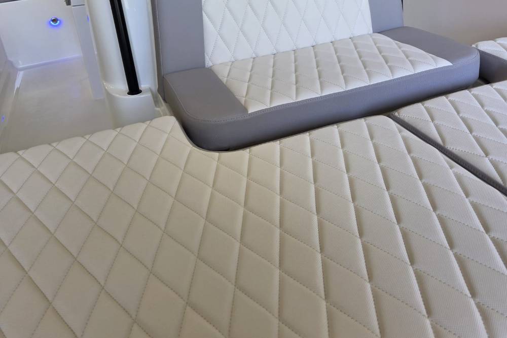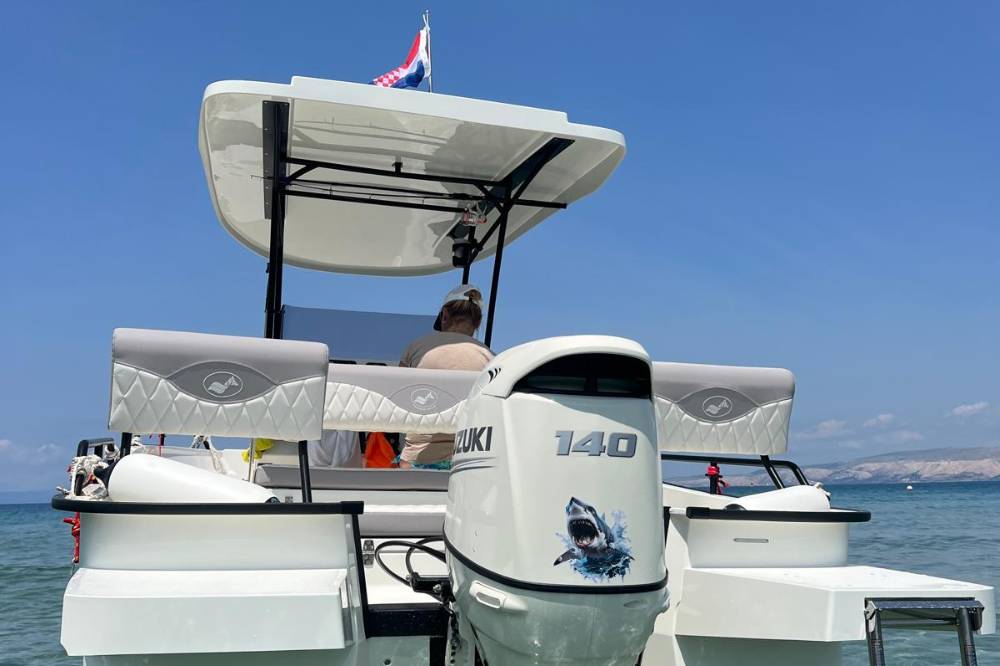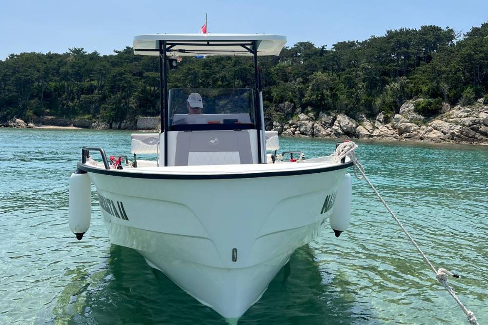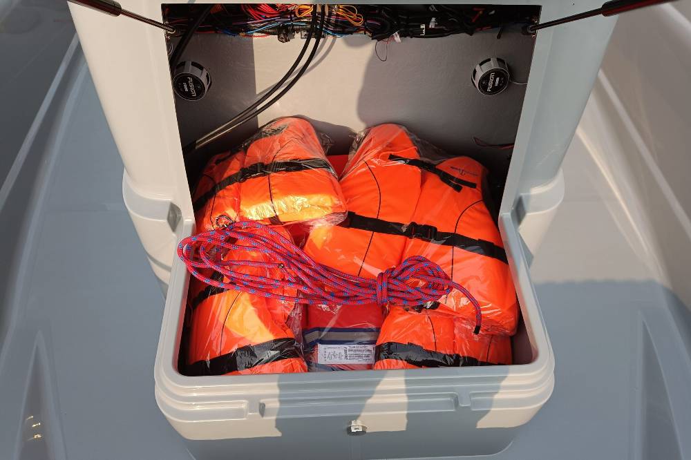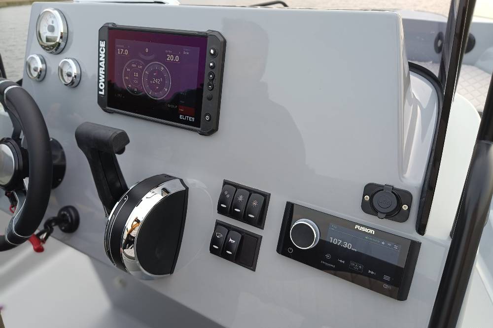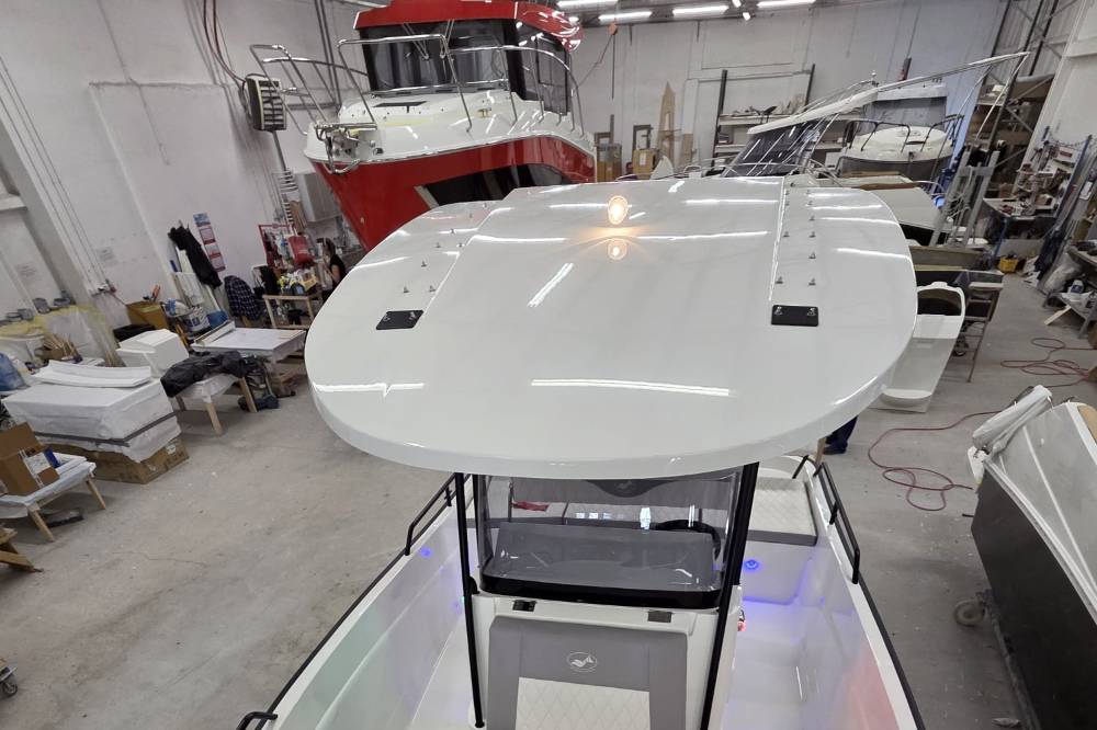 Die erste Version dieses Bootmodells wurde mit einer zentralen Steuerkonsole entworfen. Optional kann an der Konsole ein festes Hardtop-Dach auf einem Edelstahlrahmen angebracht werden, das dem Steuermann Schatten spendet und die Installation zusätzlicher Ausrüstung ermöglicht. Wir bieten eine große Auswahl an Ausstattungsoptionen, darunter zusätzliche Stauräume, Sonnenliegen und zusätzliche Rückenlehnen.