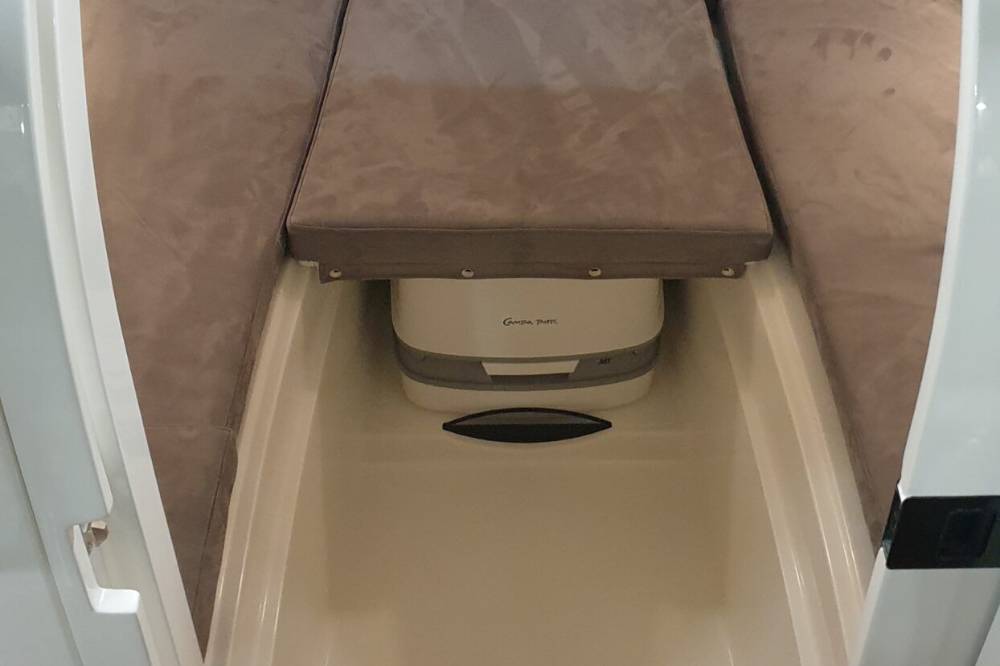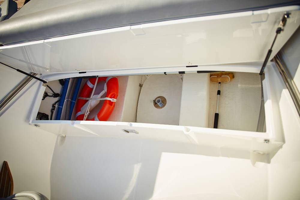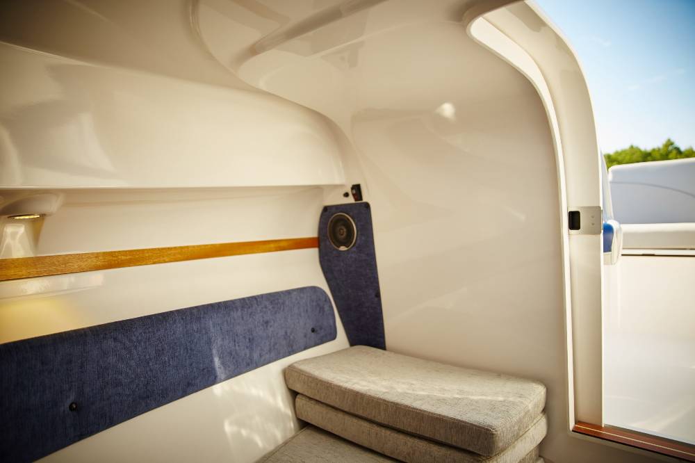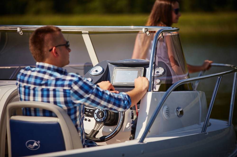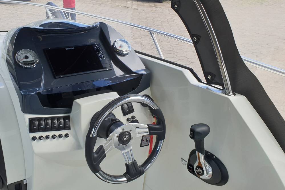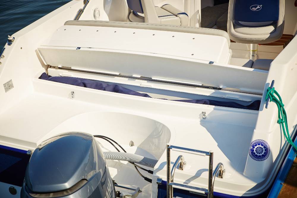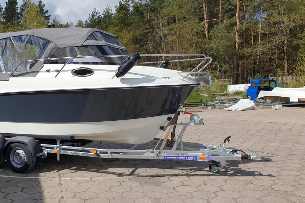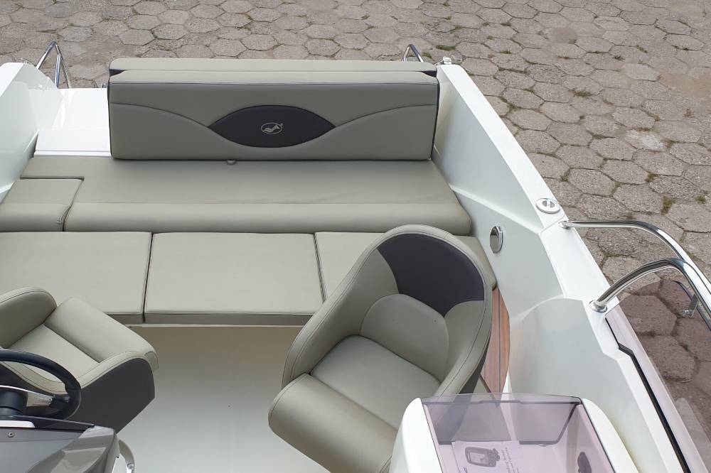 Eine moderne und ergonomische Kajutyacht. Der gut gestaltete Rumpf, die großzügige Breite von 2,54 m und die Bordwandhöhe machen das Boot stabil und sicher, und mit dem passenden Motor erreicht es hohe Geschwindigkeiten. Ein plötzlicher Wetterumschwung auf der Pegazus 550 bedeutet nicht das Ende des Vergnügens, da das Stoffdach in wenigen Minuten aufgebaut werden kann und selbst einer großen Person bequemes Stehen ermöglicht. Das ausklappbare Cockpitbett ist ein perfekter Ort zum Sonnenbaden und bietet zudem zusätzlichen Schlafplatz, insgesamt für vier Personen an Bord. Für längere Fahrten bietet die Werft sanitäre Einrichtungen (Toilette und Dusche), einen Kühlschrank und einen ausklappbaren Kocher an. Die Yacht ist zudem leicht zu transportieren und somit eine ausgezeichnete Lösung für Bootsfahrer, die Abenteuer auf verschiedenen europäischen Gewässern suchen.